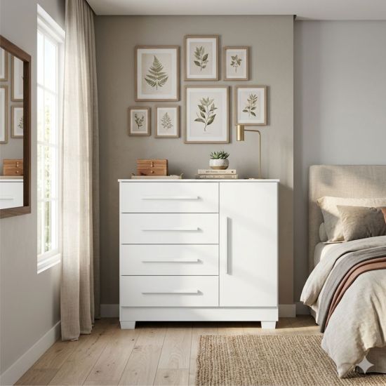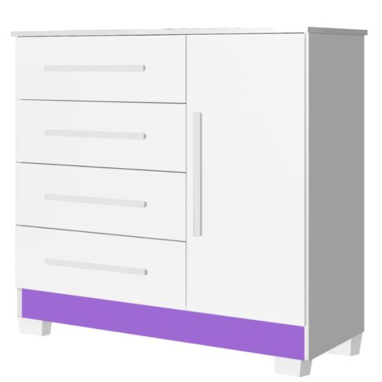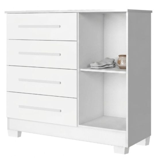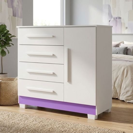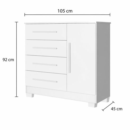 Estruturada em MDP a Cômoda Sapateira Malibú New possui um excelente acabamento com pintura U. V. e Verniz brilho de alta resistência trazendo maior durabilidade ao móvel, com 4 gavetas profundas, porta com prateleira e amplo espaço interno, corrediças metálicas, puxadores modernos.