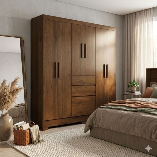 Cansado da bagunça? Conheça o Guarda-Roupa Brunela Munique 7 Portas! Espaço não vai faltar! Este modelo da JAMOVEIS conta com 7 portas, e 2 gavetas superpráticas. Feito em MDP resistente, é a solução que faltava para organizar seu quarto com estilo. Garanta já o seu!