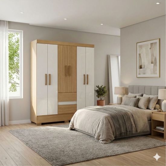 O guarda-roupa Aramóveis Coimbra Flash é a escolha ideal para quem busca praticidade, organização e um design moderno para o quarto. Produzido em MDP de alta qualidade, ele oferece excelente durabilidade e resistência no uso diário. Com 6 portas amplas, o móvel proporciona fácil acesso e ótima divisão interna, permitindo organizar roupas, calçados e acessórios de forma eficiente. Além disso, conta com 2 gavetas espaçosas, perfeitas para guardar peças menores ou itens que precisam ficar sempre à mão. Seu visual combina elegância e versatilidade, com acabamento que valoriza o ambiente e se adapta a diferentes estilos de decoração. Os puxadores alongados garantem um toque contemporâneo, além de mais conforto na abertura das portas.