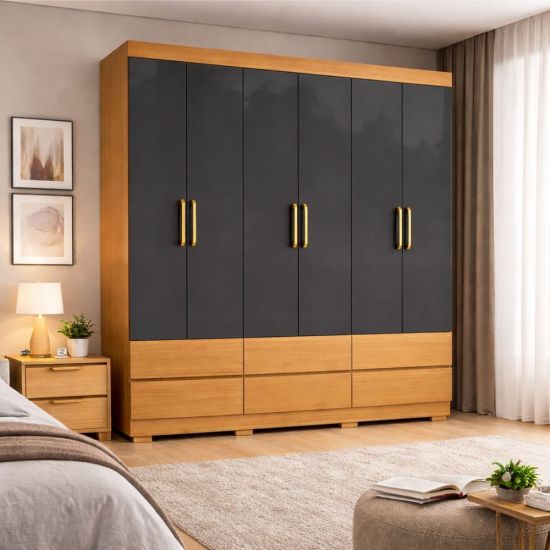 O Guarda-roupas de Casal Aramóveis Marrocos Guarujá é perfeito para quem busca espaço, organização e um visual moderno no quarto. Produzido em MDP de qualidade, ele conta com 6 portas amplas e 6 gavetas com corrediças telescópicas, garantindo abertura suave e maior durabilidade. Com 187 cm de largura, oferece excelente aproveitamento interno para roupas e acessórios, tornando o dia a dia mais prático e funcional. Ideal para deixar seu ambiente mais elegante e bem organizado.