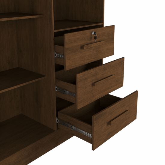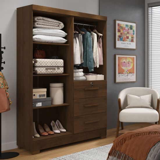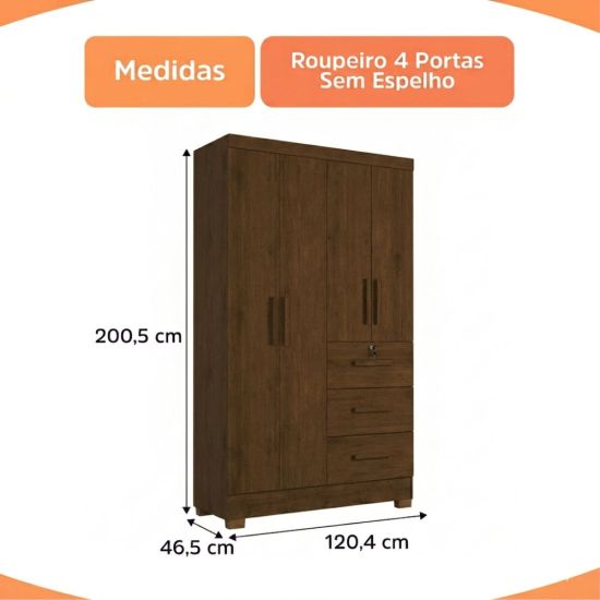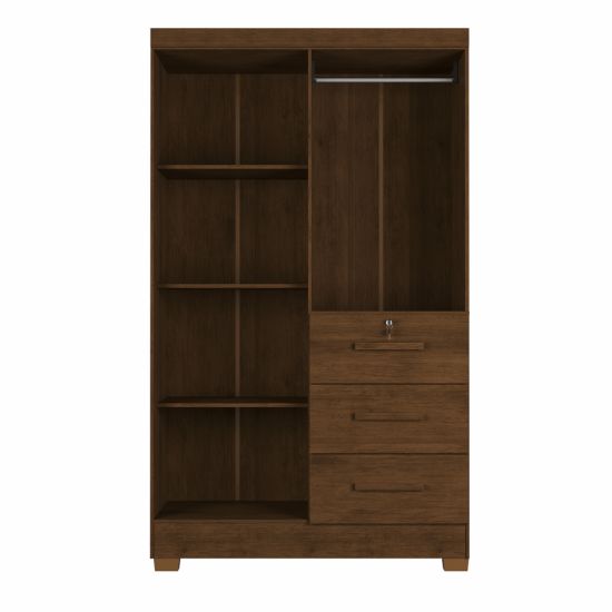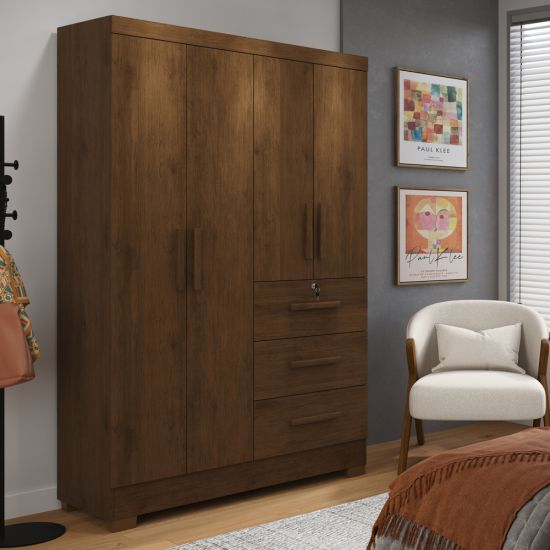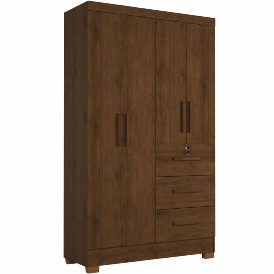 Guarda Roupas Solteiro J&A Móveis Tokio 4 portas 3 gavetas, com chave largura de 120 cm Jequitibá