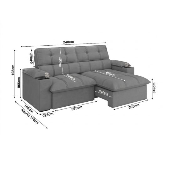 Sofá Liverpool BestHouse: Experiência de Cinema com Conforto Gigante. Se você busca o máximo de relaxamento, o Sofá Liverpool é a escolha definitiva. Com 2,40 metros de largura, ele oferece espaço de sobra para toda a família, unindo um design robusto a funcionalidades inteligentes que transformam sua sala em um verdadeiro lounge particular. O Diferencial do Conforto: O grande destaque é o seu Pillow Top de 20 cm no assento, uma camada extra de maciez que proporciona a sensação de estar flutuando. Somado à sua altura de 1,13 metros, ele oferece um apoio impecável para as costas e a cabeça, garantindo ergonomia total. O Sofá Liverpool é a combinação perfeita entre dimensões imponentes e o toque acolhedor que sua casa merece.