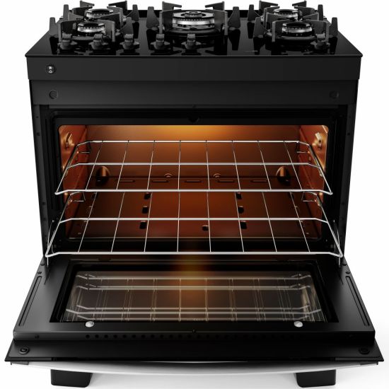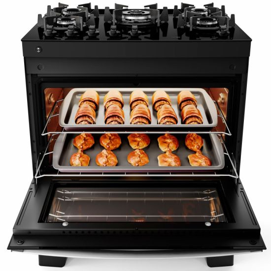 Descrição: A mesa de vidro ultrarresistente e o puxador em alumínio escovado, dão um toque de elegância à sua cozinha. Os pés altos e robustos proporcionam estabilidade e segurança durante o uso e facilitam a limpeza. E o visor amplo do forno oferece uma visão clara dos seus pratos em preparo. As grades de ferro fundido são um destaque no Agile Up Glass, combinando estilo e resistência. Além de proporcionarem um visual único, essas grades foram projetadas para suportar panelas de diferentes tamanhos, garantindo estabilidade. A potência é uma característica essencial em qualquer fogão. O Agile Glass vai além ao oferecer queimadores forjados, que garantem um desempenho superior e uma distribuição de calor uniforme. Além disso, a versão com 5 queimadores ainda conta com Tripla Chama para você preparar qualquer receita ainda mais rápido. Para maior praticidade, o fogão de inox possui 2 prateleiras deslizantes, permitindo que você ajuste facilmente a posição dos alimentos dentro do forno. Com a lâmpada do forno, você poderá visualizar seus pratos com clareza e verificar seu cozimento sem precisar abrir a porta do forno, economizando energia e mantendo a temperatura interna estável.